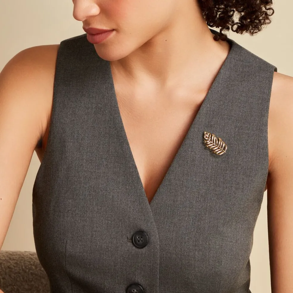 Broche Plaqué Or Jaune Forme Feuille Ajouree