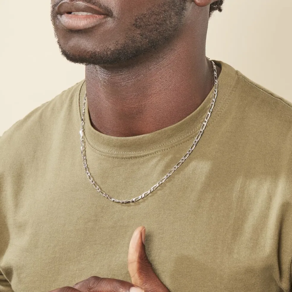 Collier Argent Blanc 925/1000 Maille Alternee 1-1 4.5mm 55cm