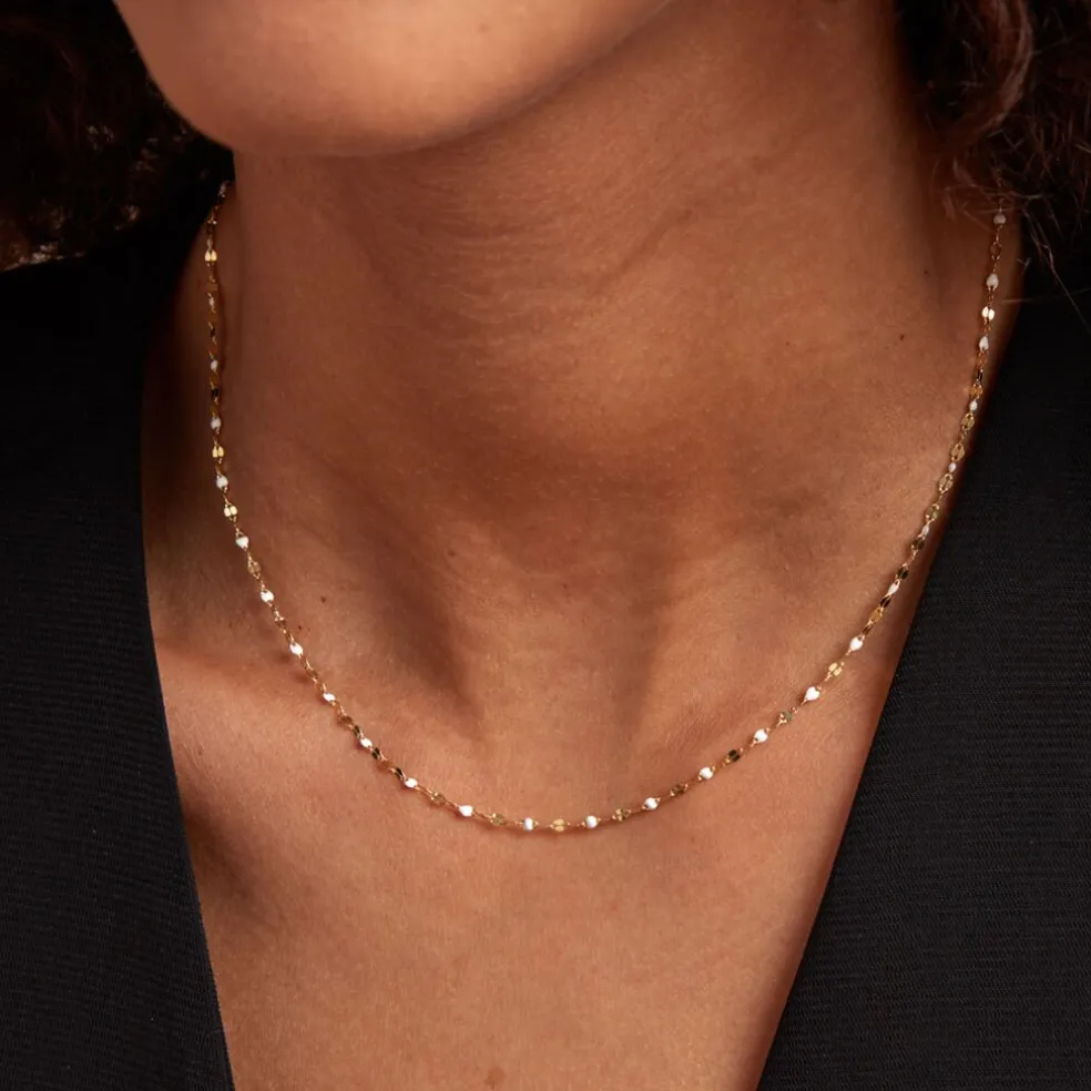Collier Or Jaune 375/1000 Email Blanc Maille Lumina 40+2cm