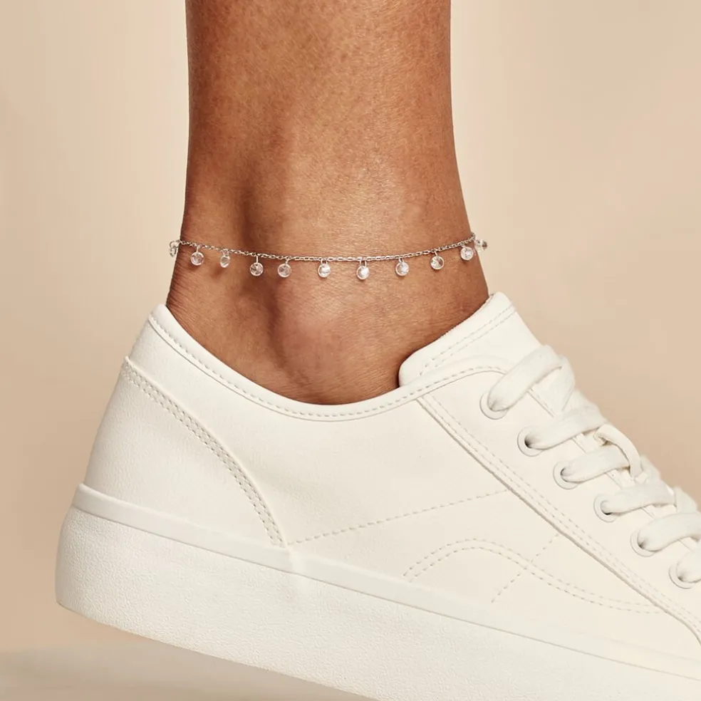 Chaine De Cheville Argent Blanc 925/1000 Oxydes De Zirconium 25cm