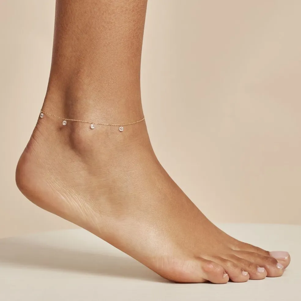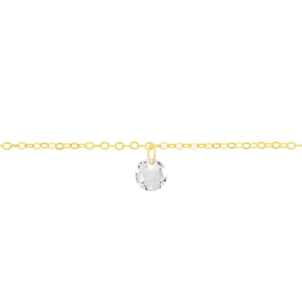 Chaine De Cheville Or Jaune 375/1000 6 Oxydes De Zirconium Perces 22+2 Cm