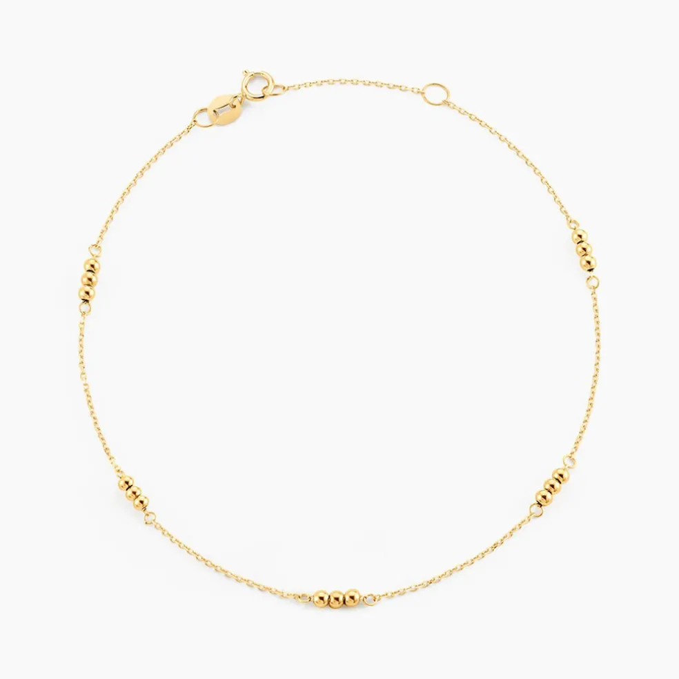 Chaine De Cheville Or Jaune 375/1000 Motifs Petites Boules Maille Forcat 22+2cm