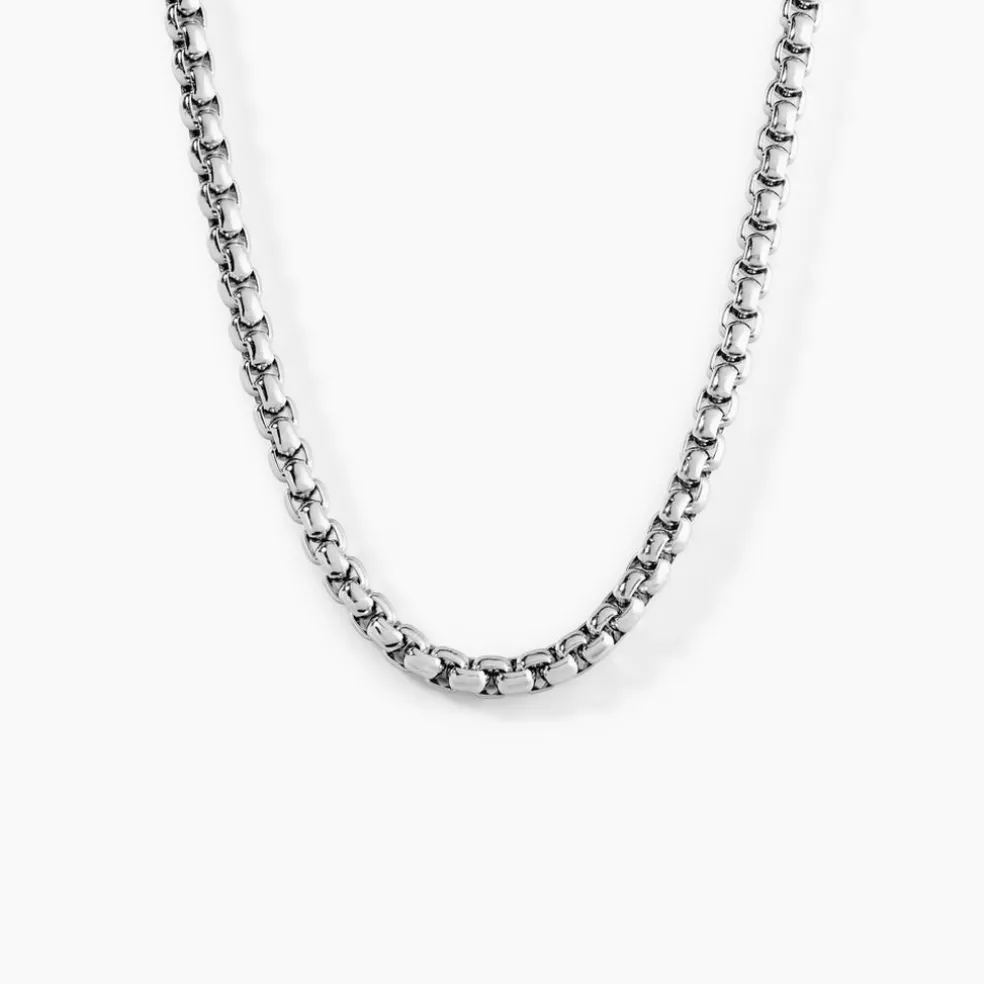Collier Acier Inoxydable Blanc Maille Venitienne Largeur 4mm 55cm