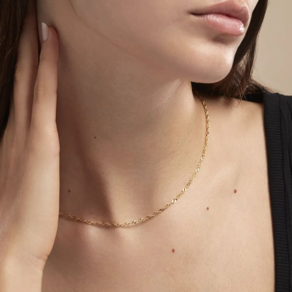 Collier Or Jaune 375/1000 Maille Singapour 2.6mm 45cm
