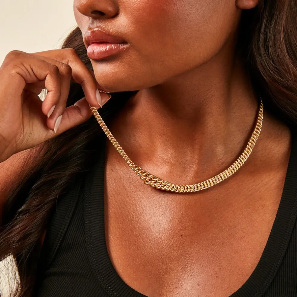 Collier Or Jaune 750/1000 Chute Maille Americaine Largeur Max 14,7Mm 45Cm