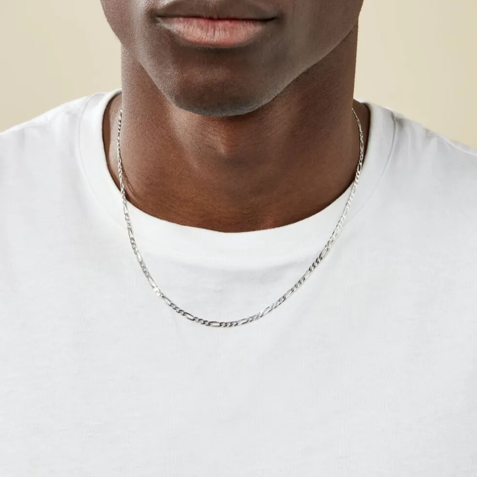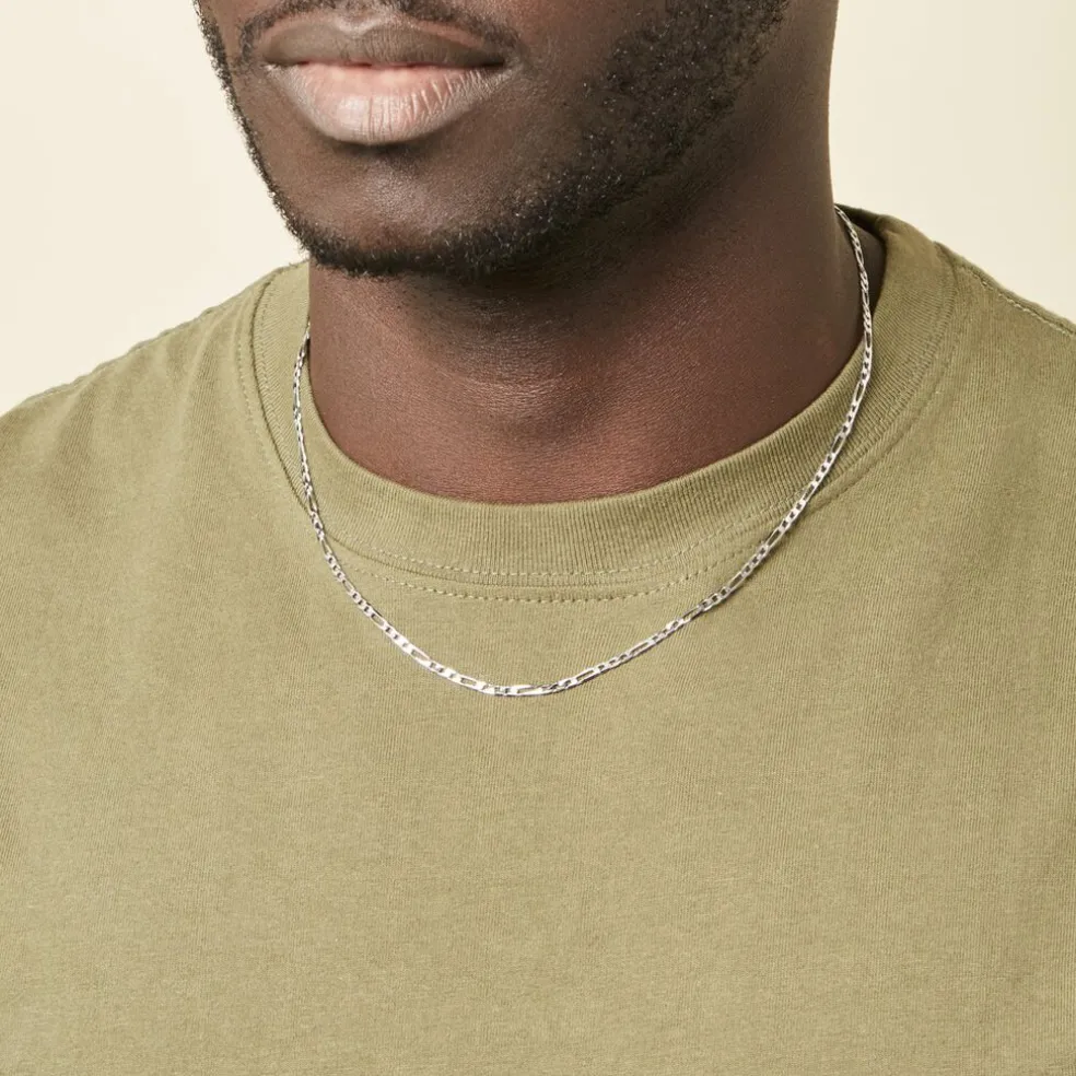 Collier Argent Blanc 925/1000 Maille Alternee 1/3 Epaisseur 3mm 50cm