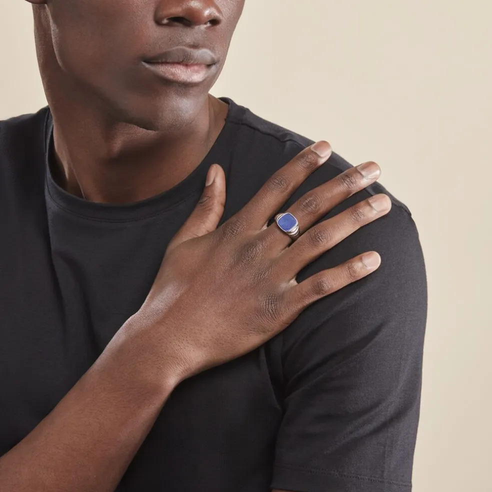 Chevalière Argent Blanc 925/1000 Forme Carré Lapis Lazuli Bleu