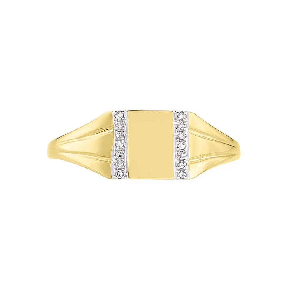 Chevalière Or Jaune 375/1000 Plateau Carré Bords Pavage Diamants 0.0378cts