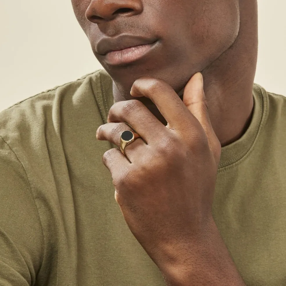 Chevelière Or Jaune 375/1000 Plateau Ovale Lisse Onyx Noir Gm