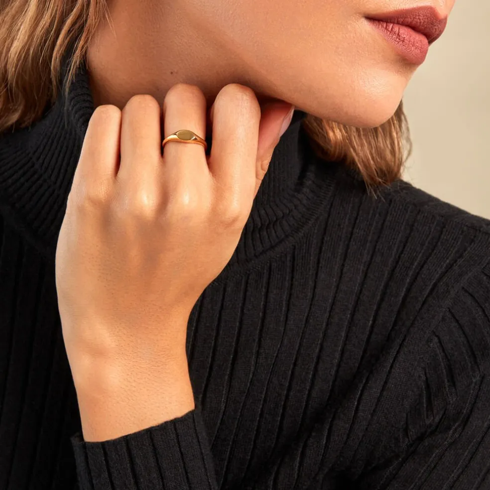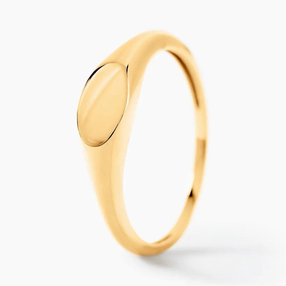 Chevalière Or Jaune 375/1000 Plateau Oval Lisse