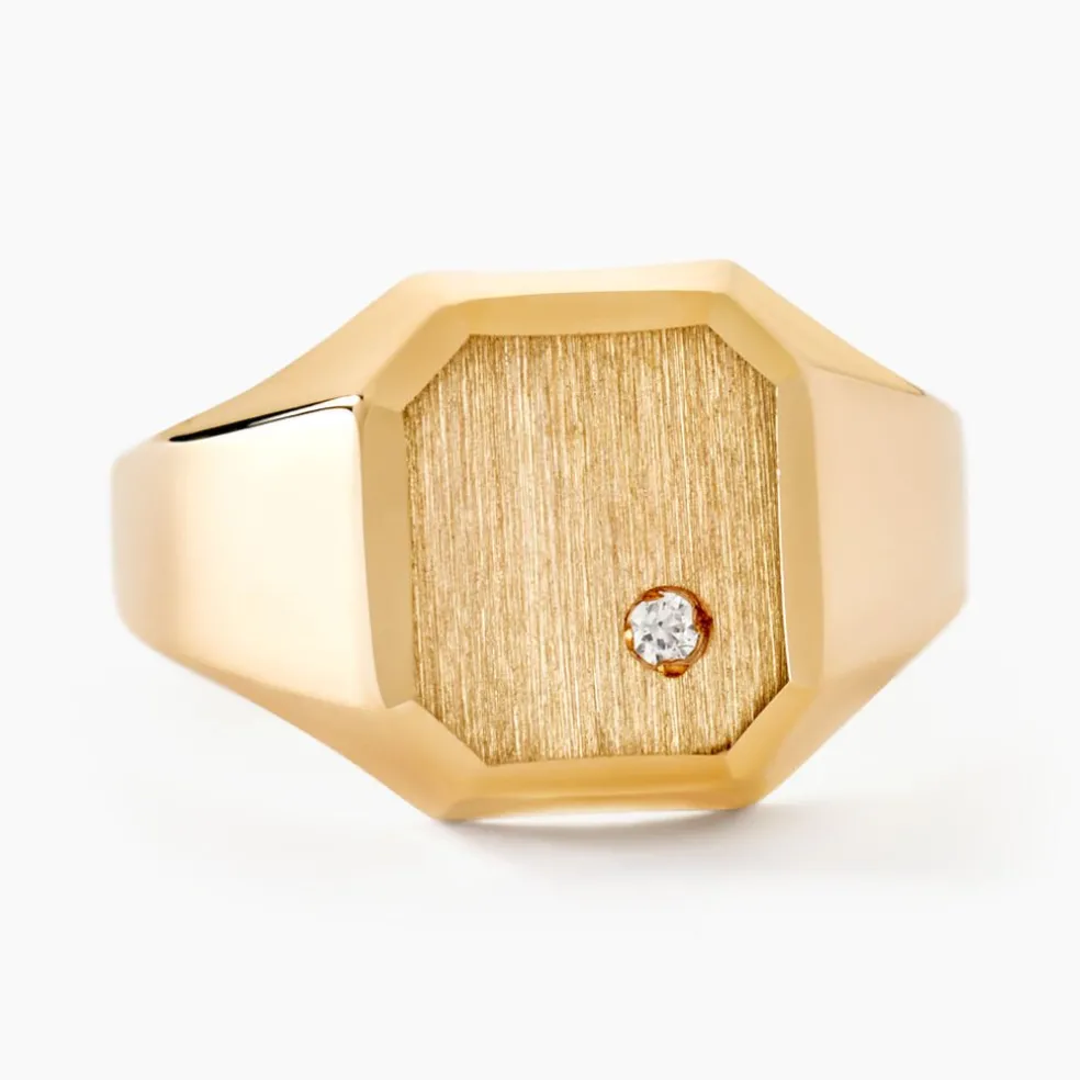Chevalière Or Jaune 375/1000 Plateau Carré Oxyde De Zirconium