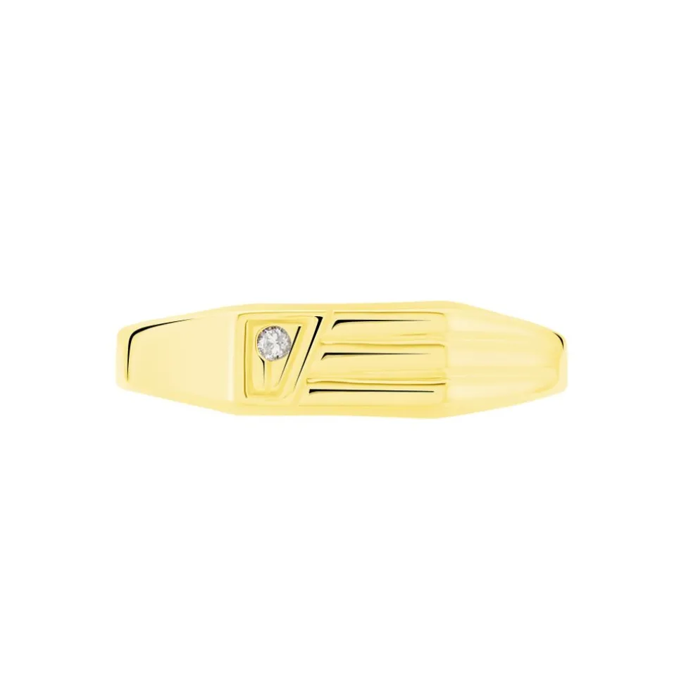 Chevaliere Or Jaune 375/1000 Forme Rectangle Serti Diamant