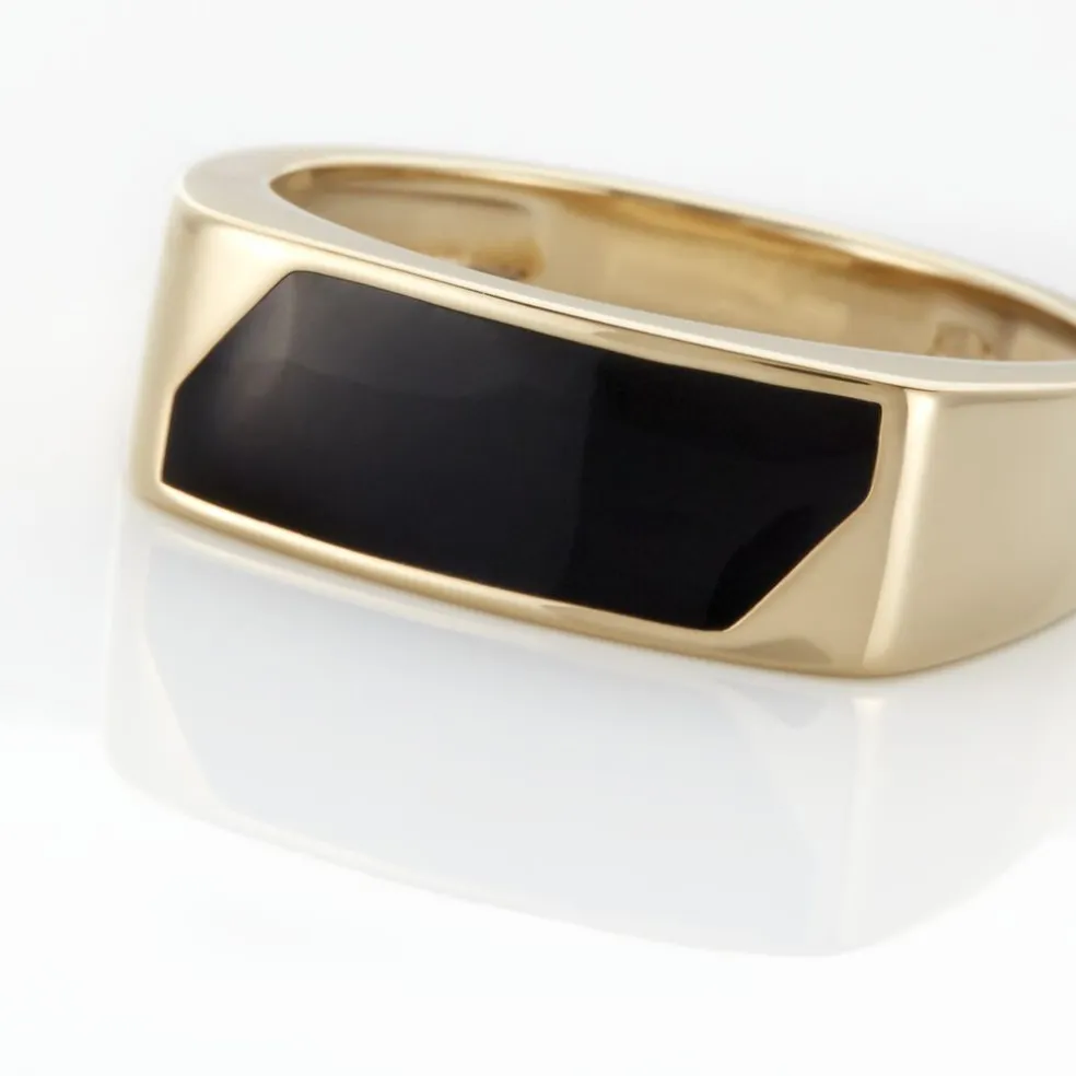 Chevaliere Plaque Or Jaune Plateau Rectangle Email Noir