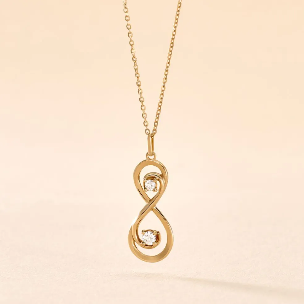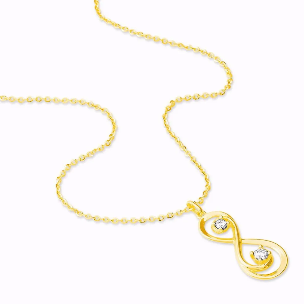 Collier Or Jaune 375/1000 Forme Infini Deux Oxydes Blancs 42cm