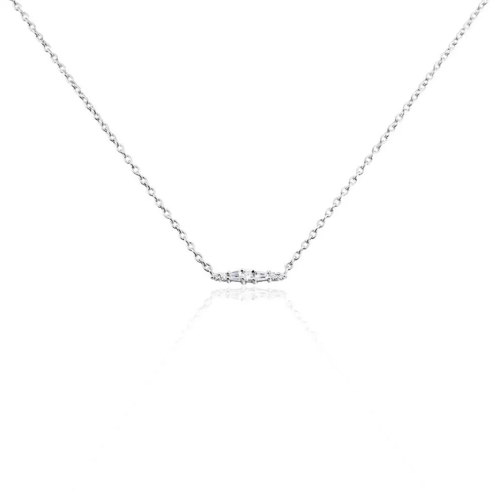Collier Argent 925/1000 Petites Navettes Oxydes De Zirconium Maille Forçat 45cm