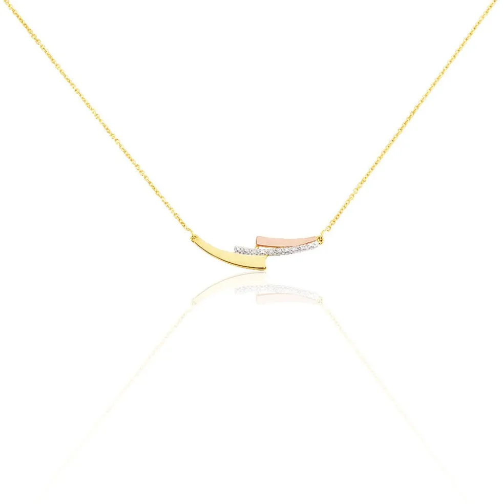 Collier Or Tricolore 375/1000 Diamants 42cm