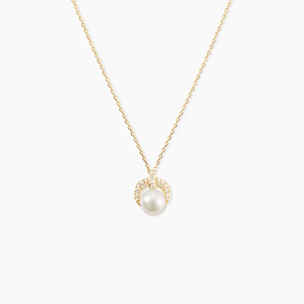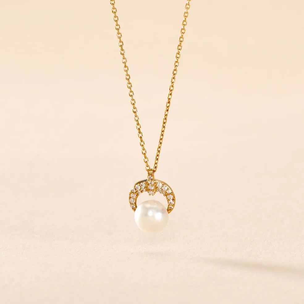 Collier Or Jaune 375/1000 Perle De Culture 6mm Demi Cercle Oxydes De Zirconium 43cm