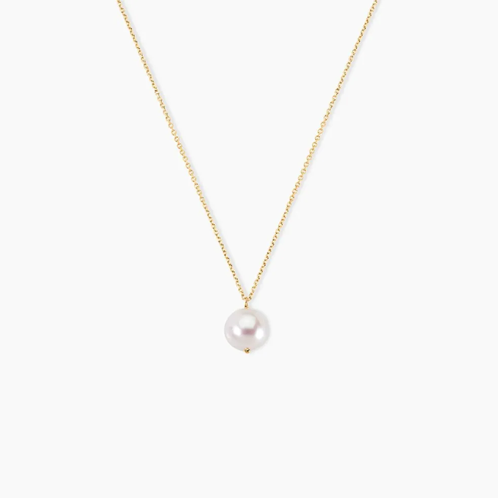 Collier Or Jaune 375/1000 1 Perle De Culture Ronde Blanche Percee 7.5/8mm Maille Forcat 40+2cm