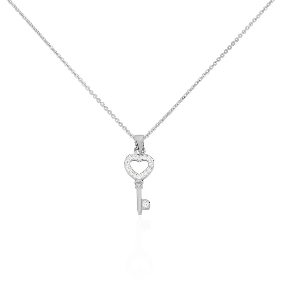 Collier Argent 925/1000 amy Pendentif Clef Avec Coeur Et Oxydes De Zirconium Maille Forcat