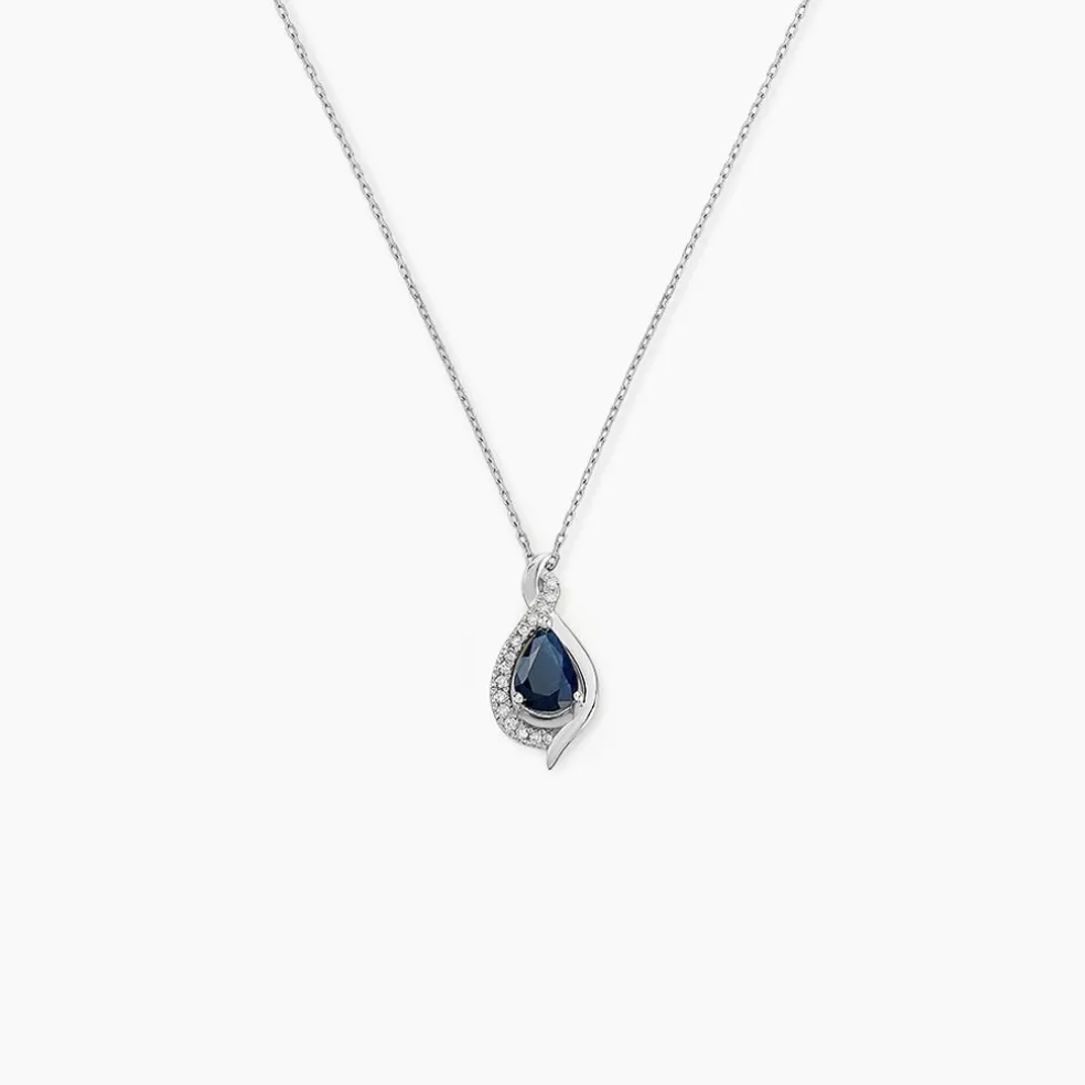 Collier Or Blanc 375/1000 Poire Saphir Et Diamants 42cm