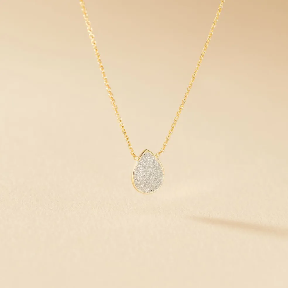 Collier Or Jaune 375/1000 Motif Goutte Glitter Silver Maille Jaseron 42cm