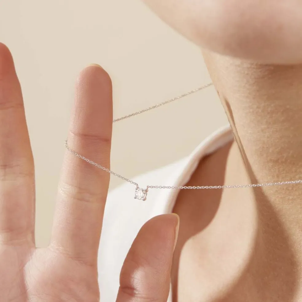 Collier Or Blanc 375/1000 Solitaire Diamant 0.30cts 42cm