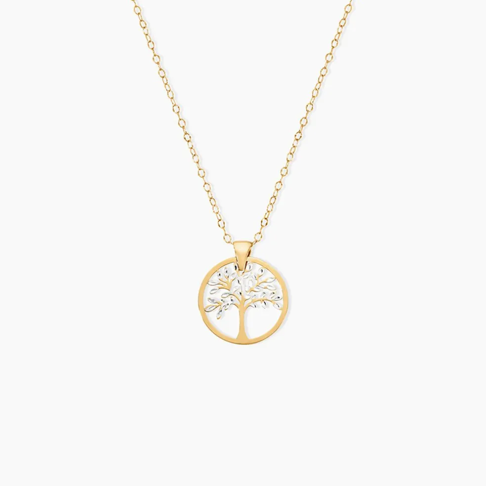 Collier Bicolore Jaune Blanc Or 750/1000 Arbre De Vie Maille Forcat 45Cm