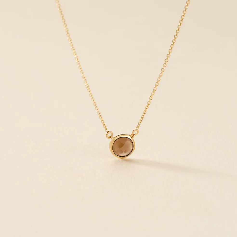 Collier Or Jaune 375/1000 Quartz Fume Serti Clos Maille Forçat 40+2cm