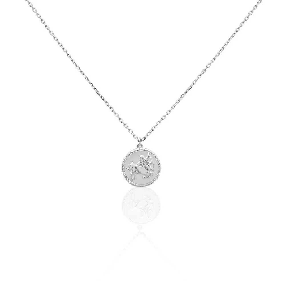 Collier Argent Blanc 925/1000 Pastille Signe Du Zodiaque Sagittaire Maille Forcat 55cm