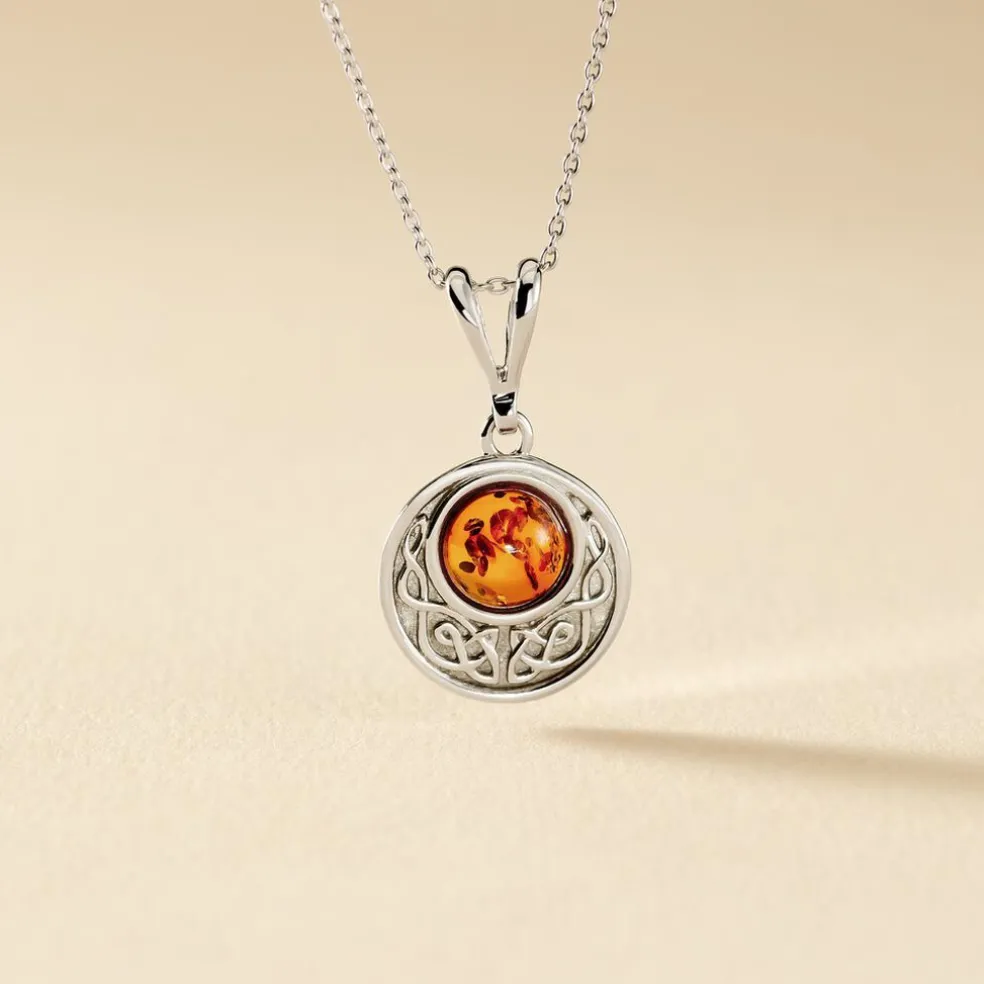 Collier Argent Blanc 925/1000 Ambre Cognac 42cm