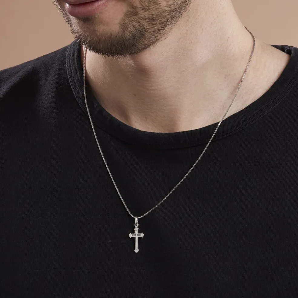 Collier Argent Blanc 925/1000 Croix Maille Spiga 55cm