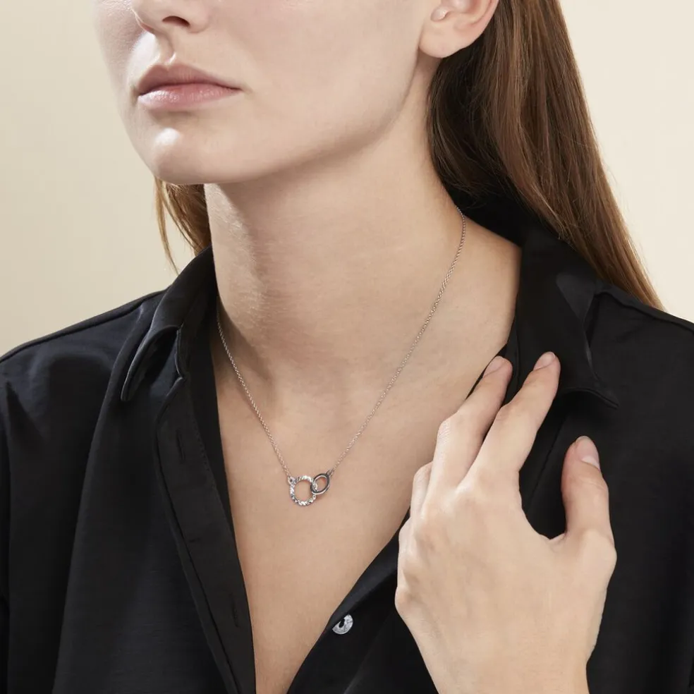 Collier Argent Blanc 925/1000 Double Cercles Effet Diamanté Maille Forçat 45cm