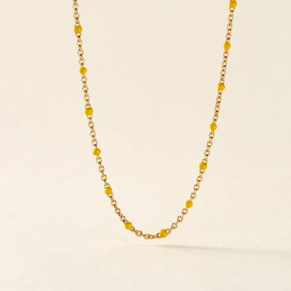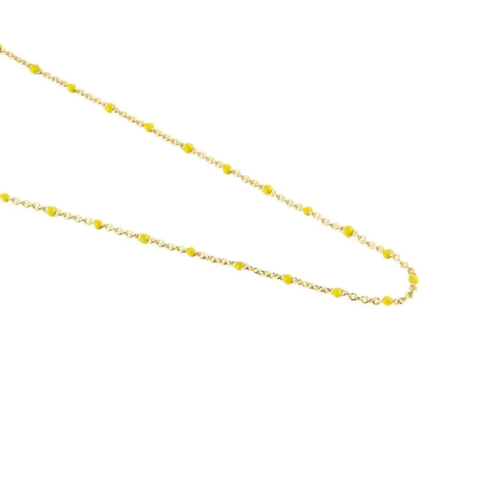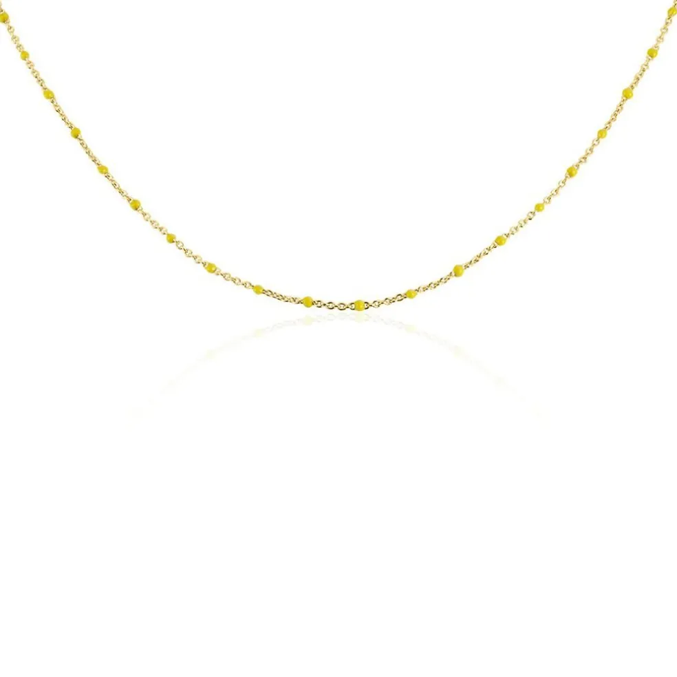 Collier Argent Dore 925/1000 Email Jaune 44cm