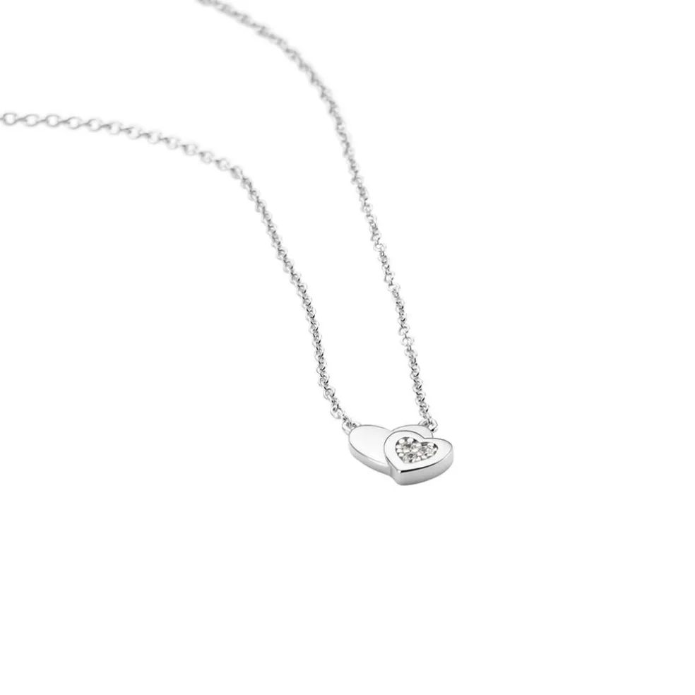 Collier Argent 925/1000 dounyo Double C艙ur Pavage Oxydes De Zirconium Maille Forcat 45cm