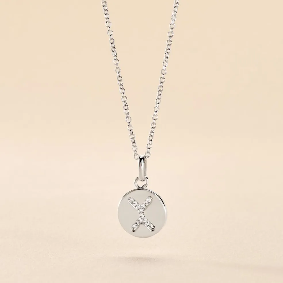 Collier Argent 925/1000 eugenien Pendentif Lettre X Pavage Oxydes De Zirconium Maille Forcat 45cm