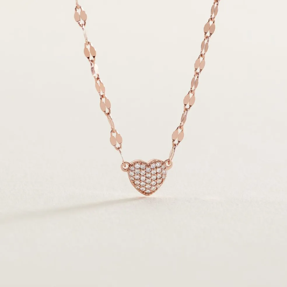 Collier Argent Rose 925/1000 C艙ur Pavage Oxydes De Zirconium Maille Lumina 45cm