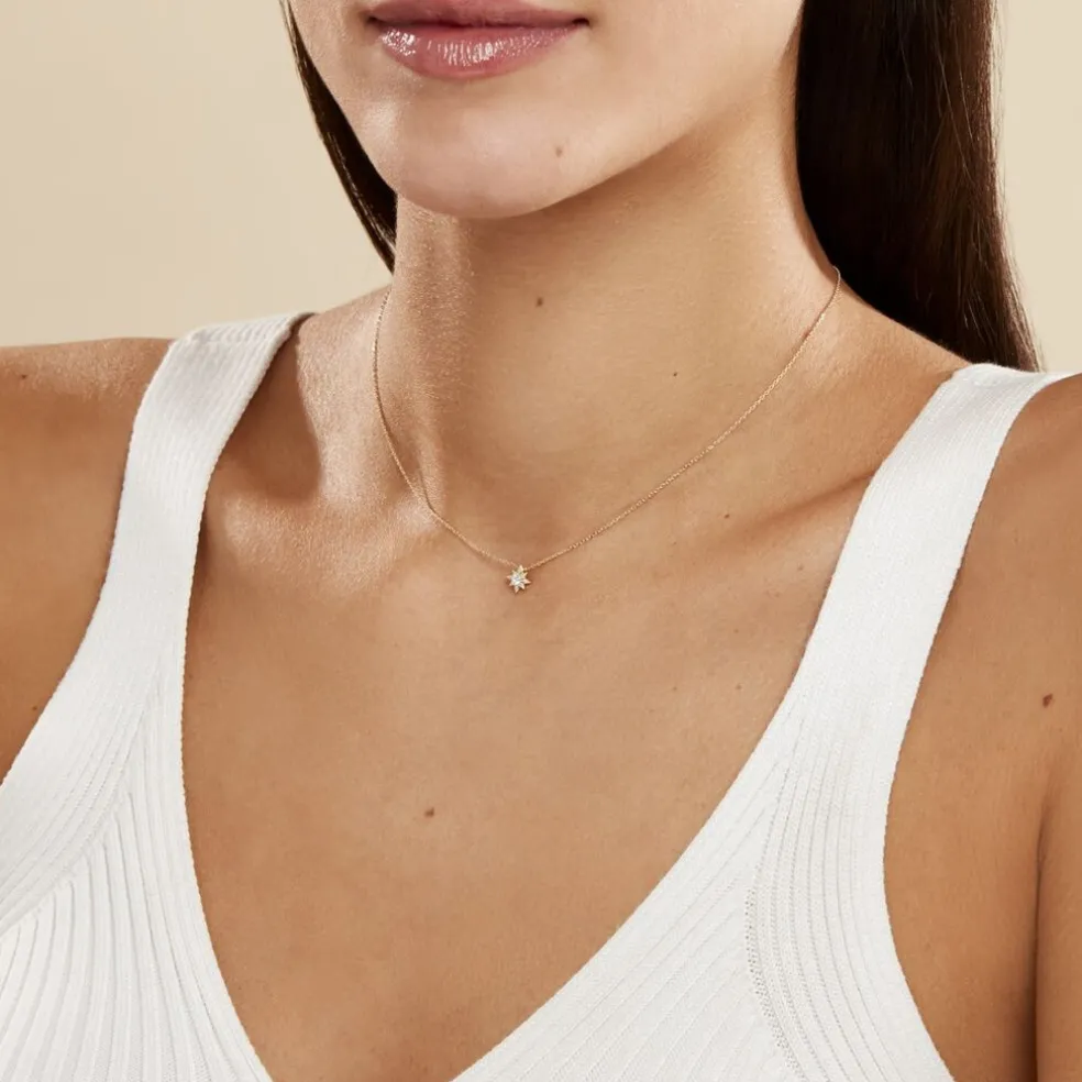 Collier Or Jaune 375/1000 Motif Etoile Oxyde De Zirconium Central 42cm