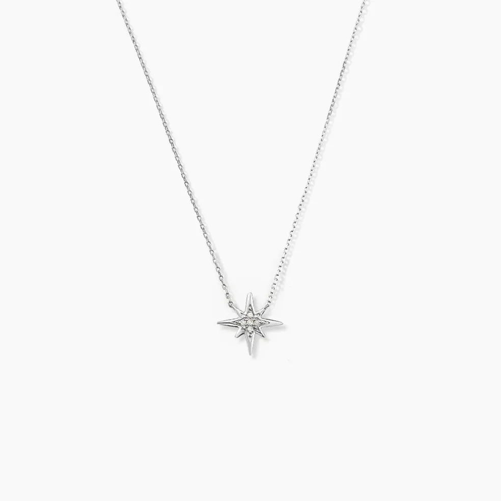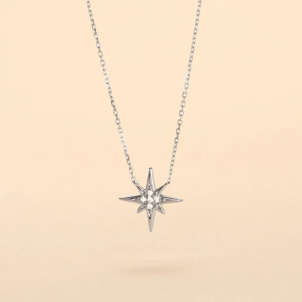 Collier Or Blanc 375/1000 Forme Etoile Pavage Diamants 42cm