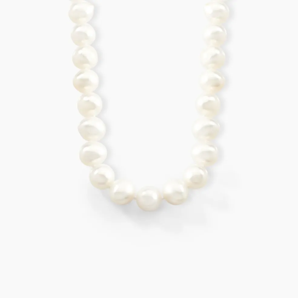 Collier Or Jaune 375/1000 Perles De Culture 8/8.5mm Baroque Blanche 42cm