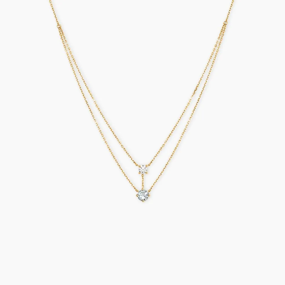 Collier Or Jaune 375/1000 Topaze Bleu Sky 0.33cts Et Oxyde De Zirconium Serti Griffes Double Rang Maille Forcat 40+2cm