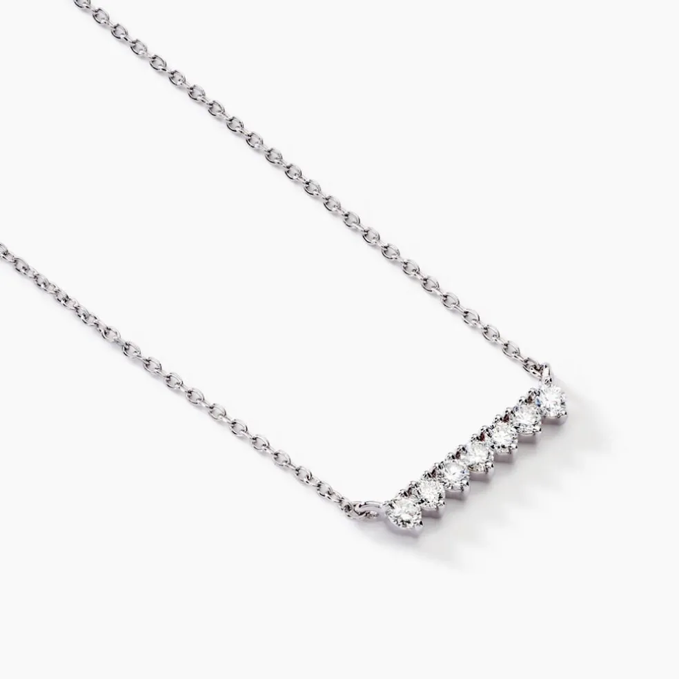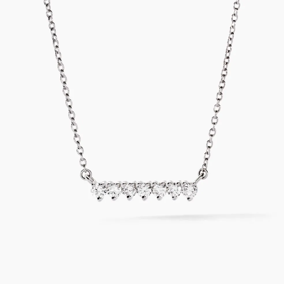 Collier Or Blanc 375/1000 Barrette Diamants Synthetiques 0.20cts 40+2cm