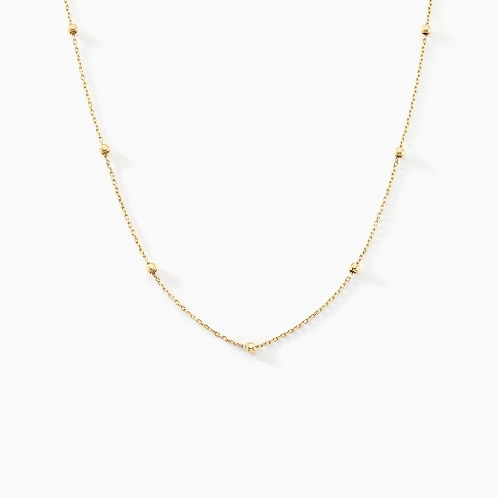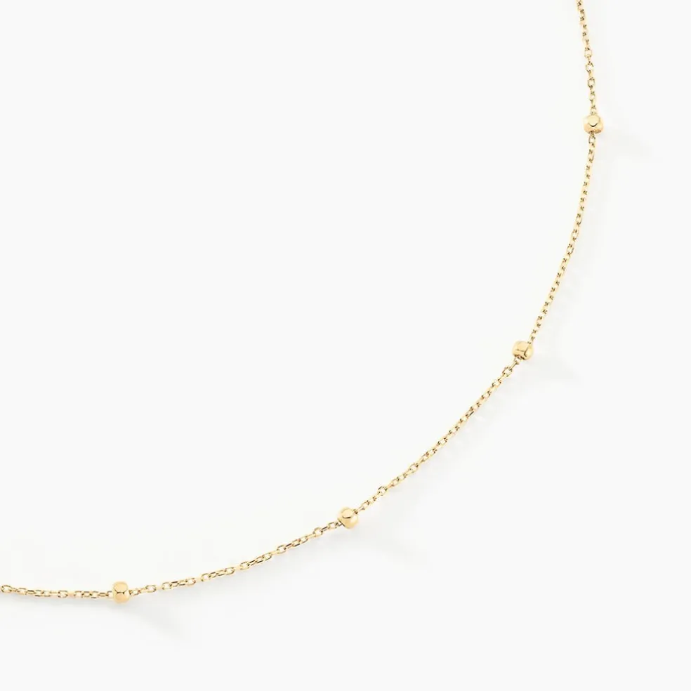 Collier Or Jaune 375/1000 Petites Boules Maille Forcat 36+2cm