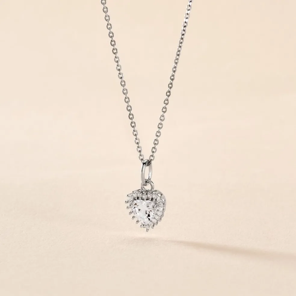 Collier Argent 925/1000 calvi Pendentif Coeur Calvi Avec Oxydes De Zirconium Chaine Maille Forcat 42cm