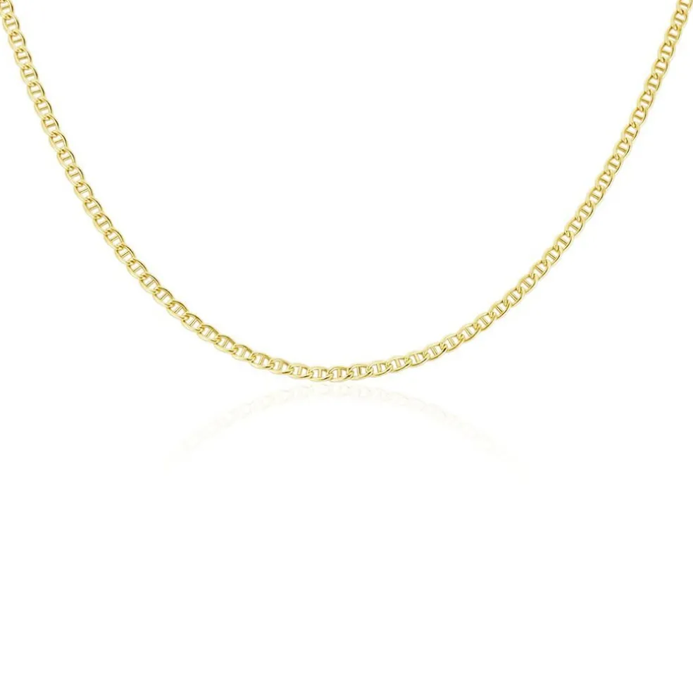 Collier Or Jaune 375/1000 Maille Marine Plate Largeur 3.05mm 60cm