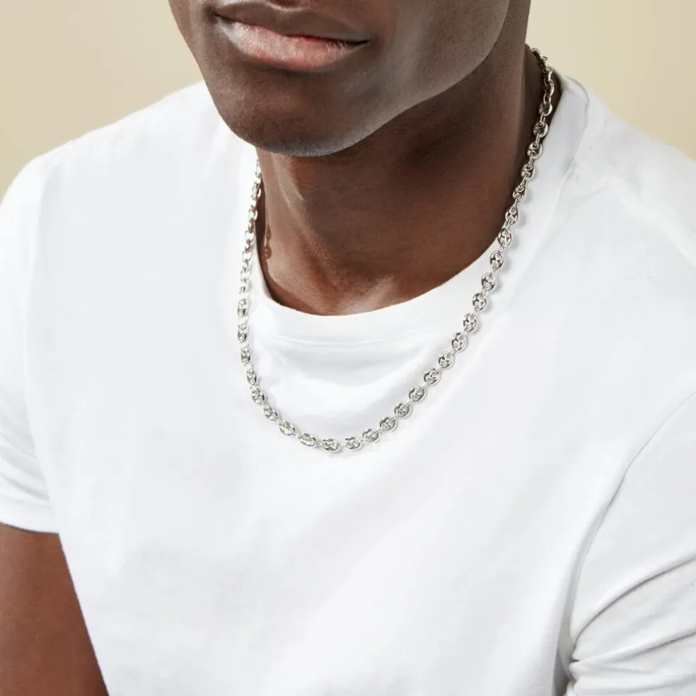 Collier Argent Blanc 925/1000 Maille Grain De Cafe Epaisseur 6mm 55cm
