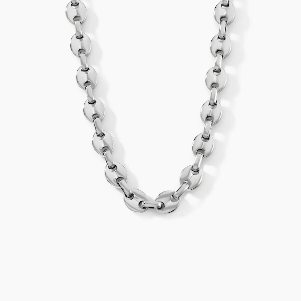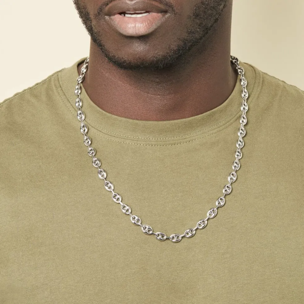 Collier Argent Blanc 925/1000 Maille Grain De Cafe Epaisseur 8mm 60cm
