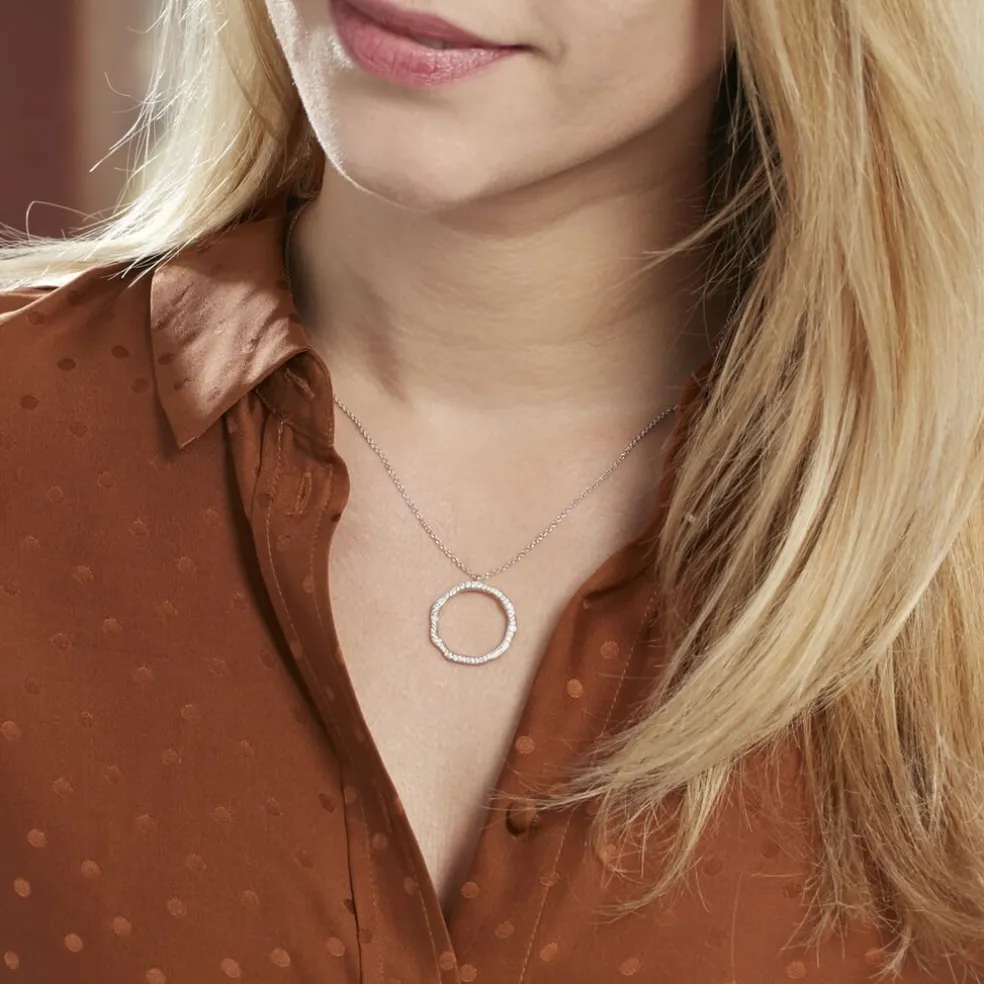Collier Argent 925/1000 Cercle Ondule Oxyde 45cm