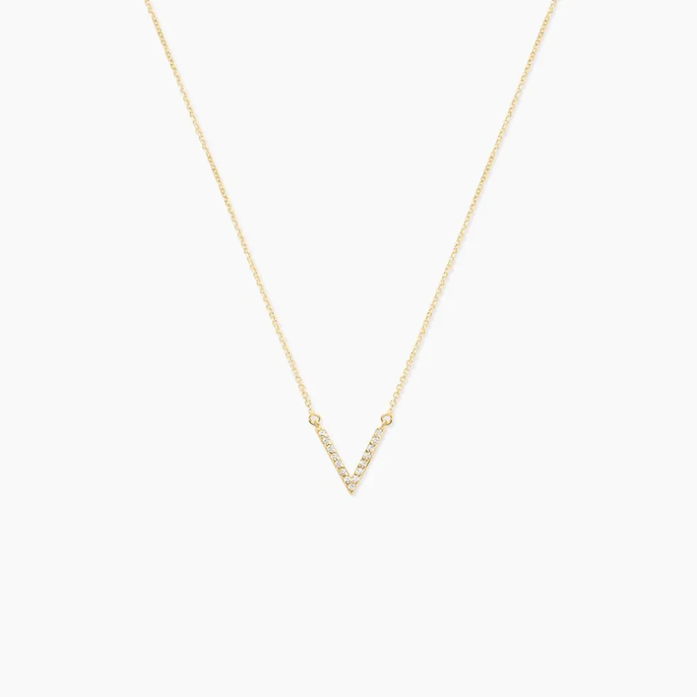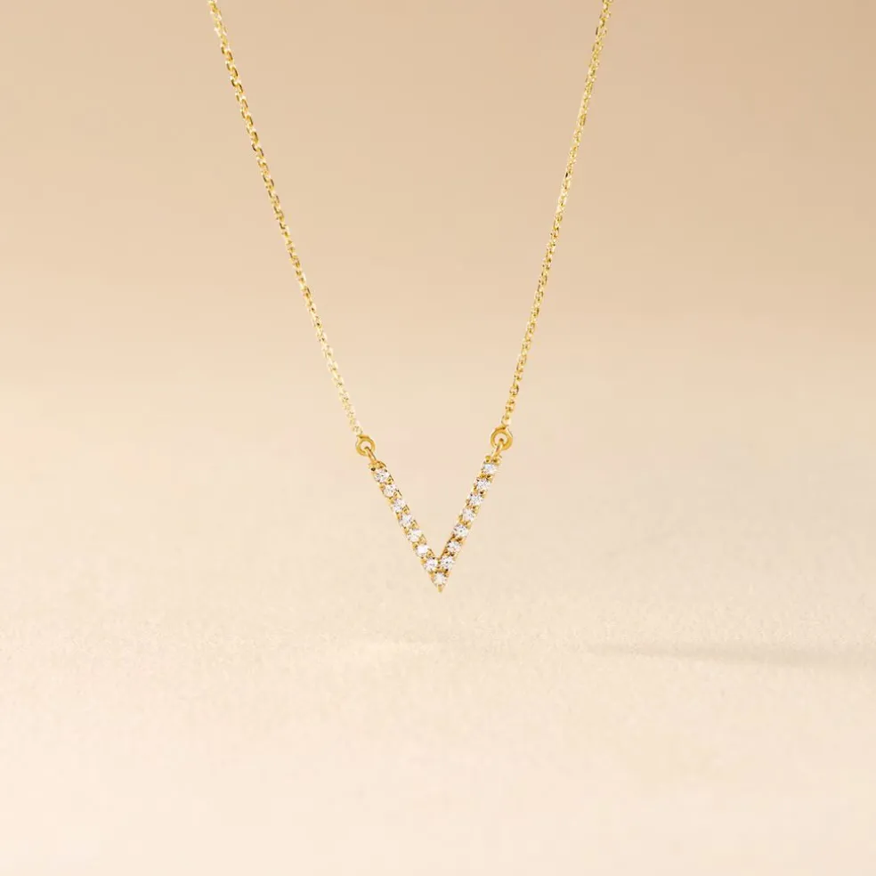 Collier Or Jaune 375/1000 Forme V Oxydes De Zirconium 42cm