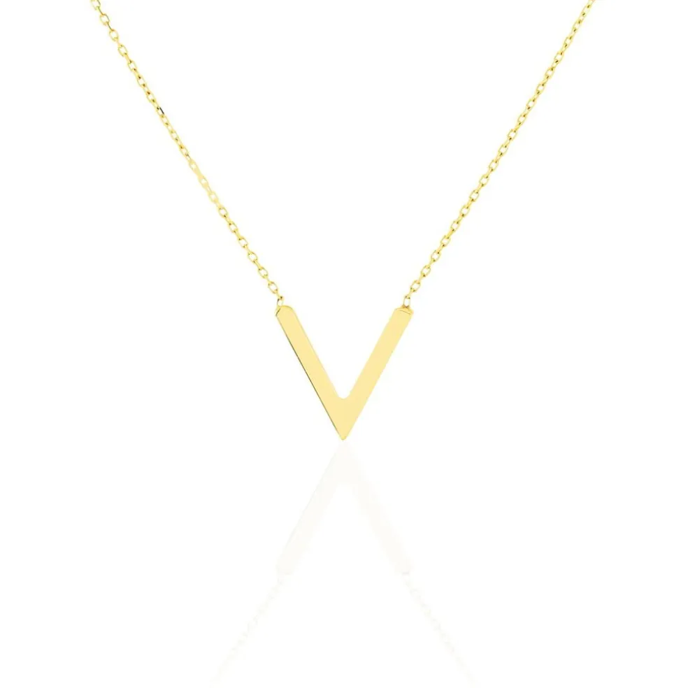 Collier Or Jaune 375/1000 Forme V Pm Maille Forcat 40+2cm