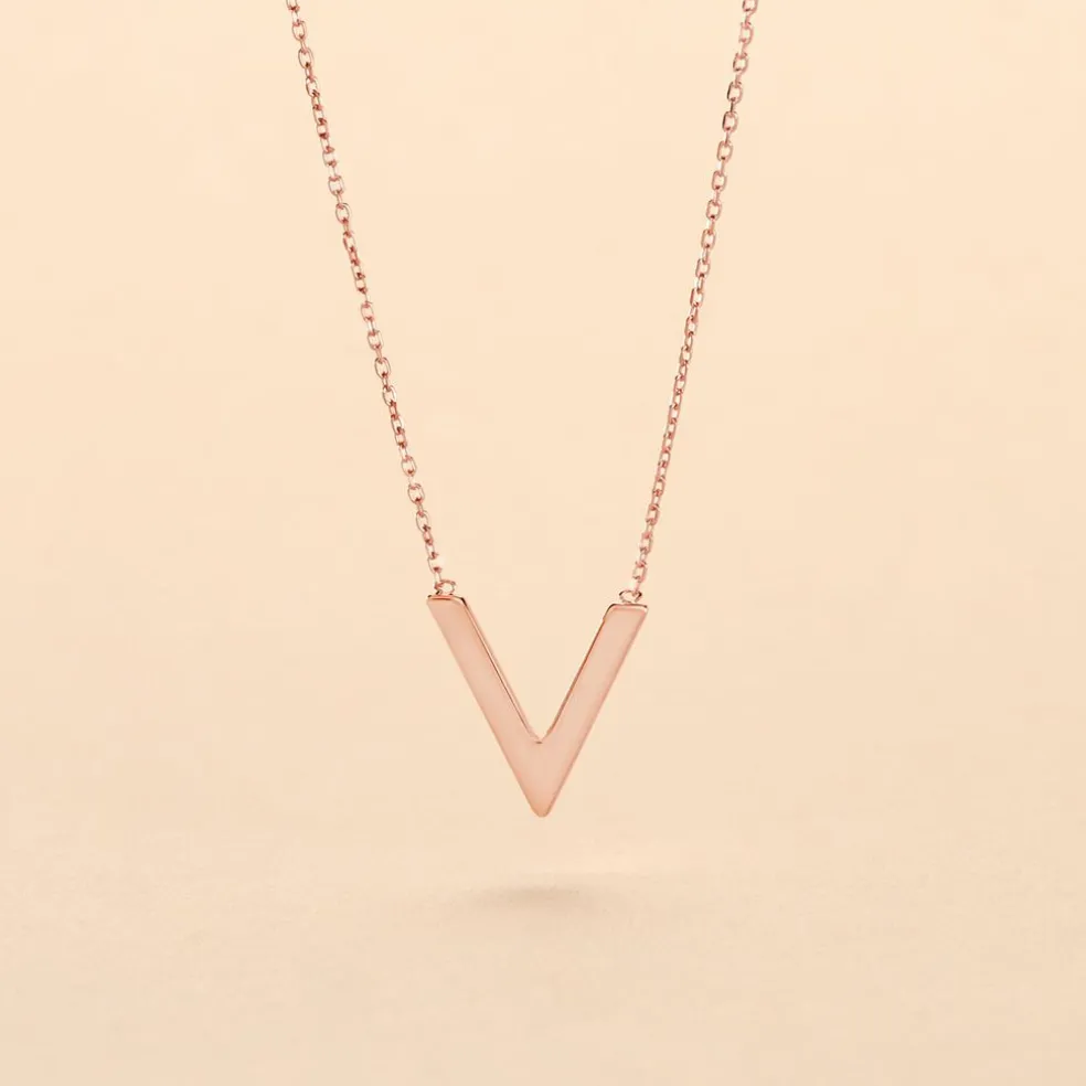 Collier Or Rose 375/1000 Forme V Pm Maille Forcat 40+2cm